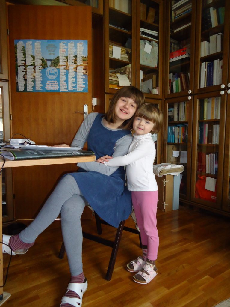 A már hatodikos Hangának ötéves húga, Zolna segít éppen a tanulásban (Fotó: Magánarchívum)