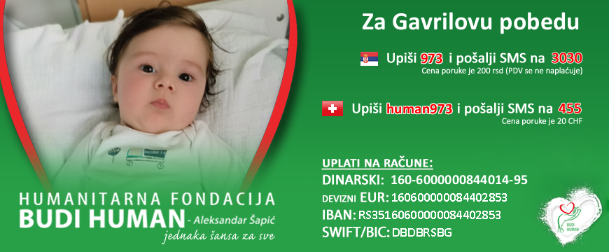 „Május 25-ére kaptunk időpontot a budapesti kórházban, ez az az időpont, amikor Gavrilo elmegy és elvégzi az összes szükséges vizsgálatot a terápia megkezdése előtt. Hétfőn lesz egy pontos kivonatunk az alapítványtól, hogy mennyi pénz hiányzik, és hogy lesz-e elegendő arra, hogy fogadjon minket a kórház. 2,5 millió eurót gyűjtöttünk össze eddig, ami magában foglalta a génterápia árát a kezelésekkel és a külföldi szállással „- mutat rá Nevena Đurđević.
