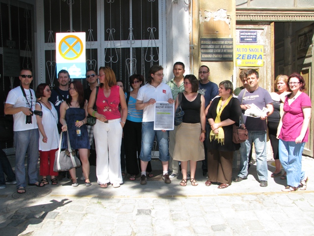 Az „üvegpalota” előtt zentai és újvidéki kollégák is csatlakoztak hozzánk, de egyértelműen a szabadkai fiatal szerkesztő- és újságírógárda volt túlsúlyban. Néhány rendőrt is kivezényeltek, ami igazán meglepett. – Pressburger Csaba jegyzete teljes terjedelemben a Család Kör június 24-én megjelent számában olvasható.