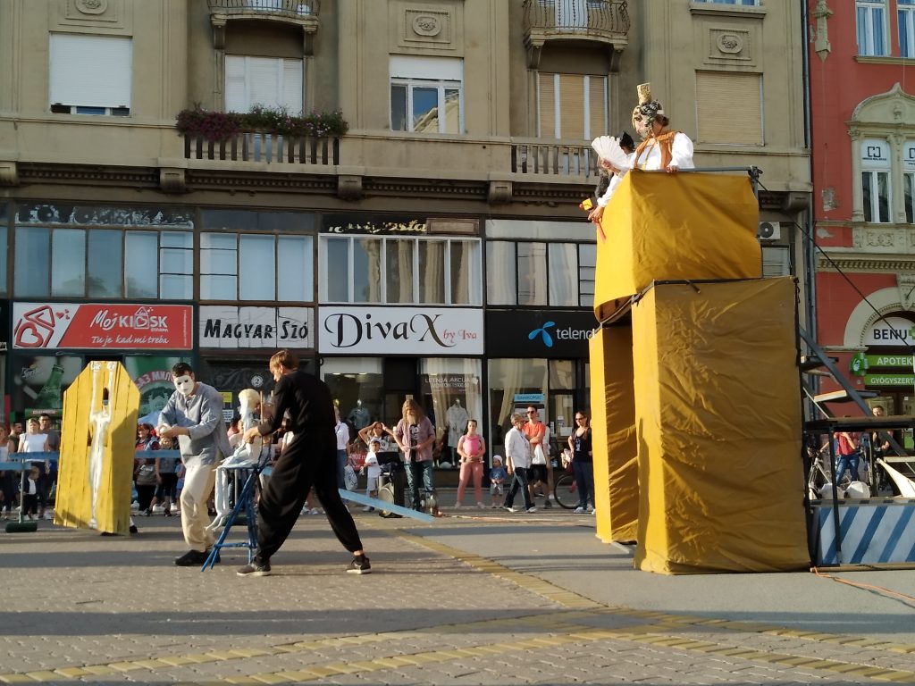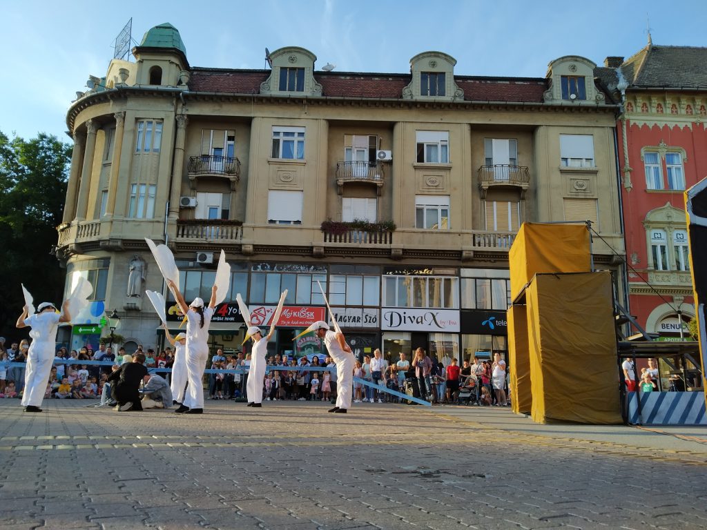 Kedden a Szabadkai Gyermekszínház Ikarosz Krétán – Szélben lebegő mese című előadását adták elő a Népszínház előtt. A nagyszámú gyermekközönség szájtátva nézte a látványos maszkba öltözött színészeket.