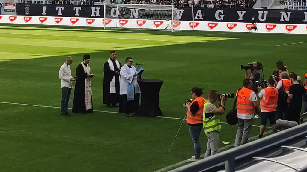 Az ünnepség kezdetén az akadémisták tartottak néhány perces bemutatót, majd az átadó a pálya megszentelésével folytatódott.