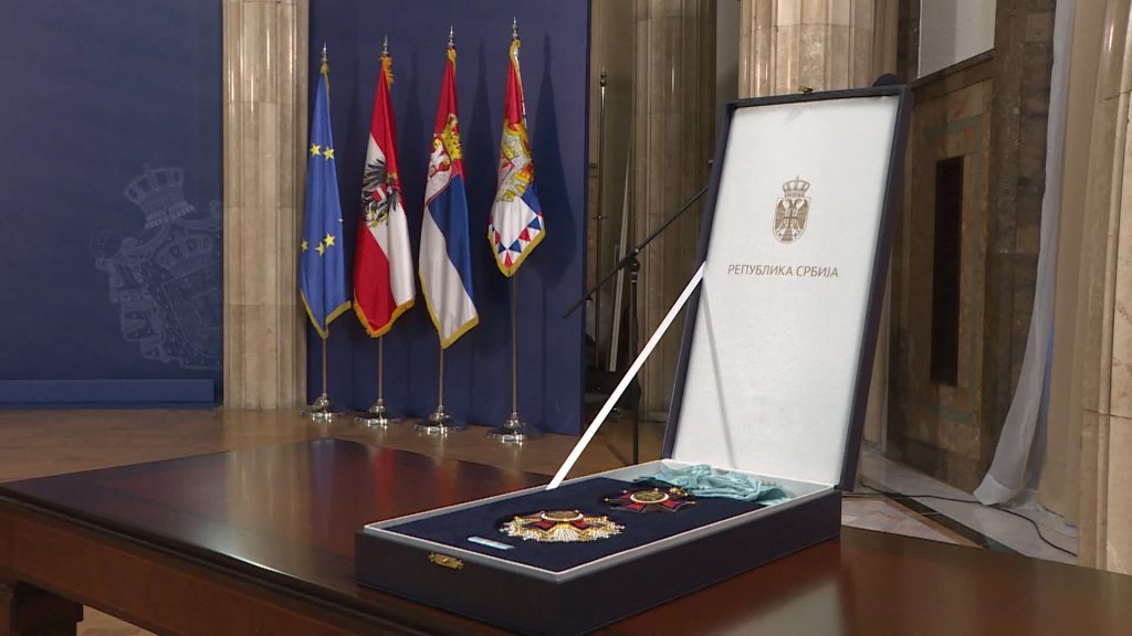Az ünnepélyes ceremónián elhangzott, hogy a kitüntetést az osztrák kancellár a Szerbia és Ausztria közötti kapcsolatok elmélyítéséért kapta.