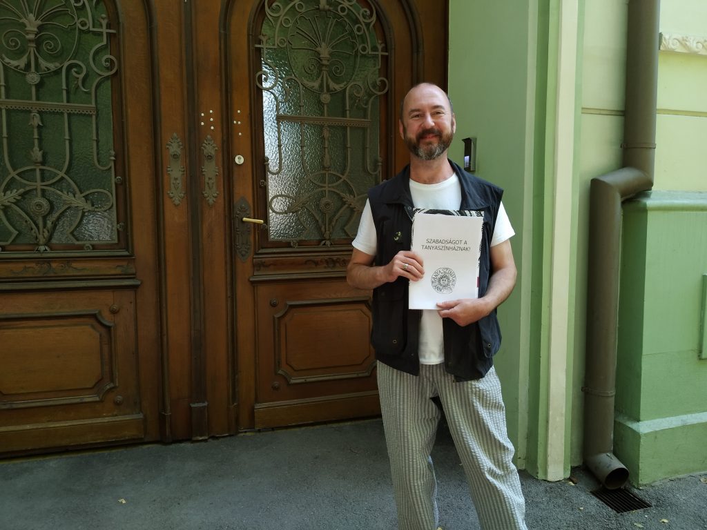 Szögi Csaba, a Szabadságot a Tanyaszínháznak! elnevezésű petíció egyik kezdeményezője hétfőn koradélután átadta Szabadkán a Magyar Nemzeti Tanács épületében a támogatói aláírások kíséretében a petíció szövegét.