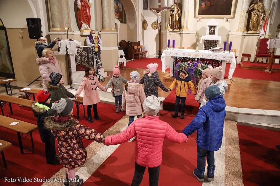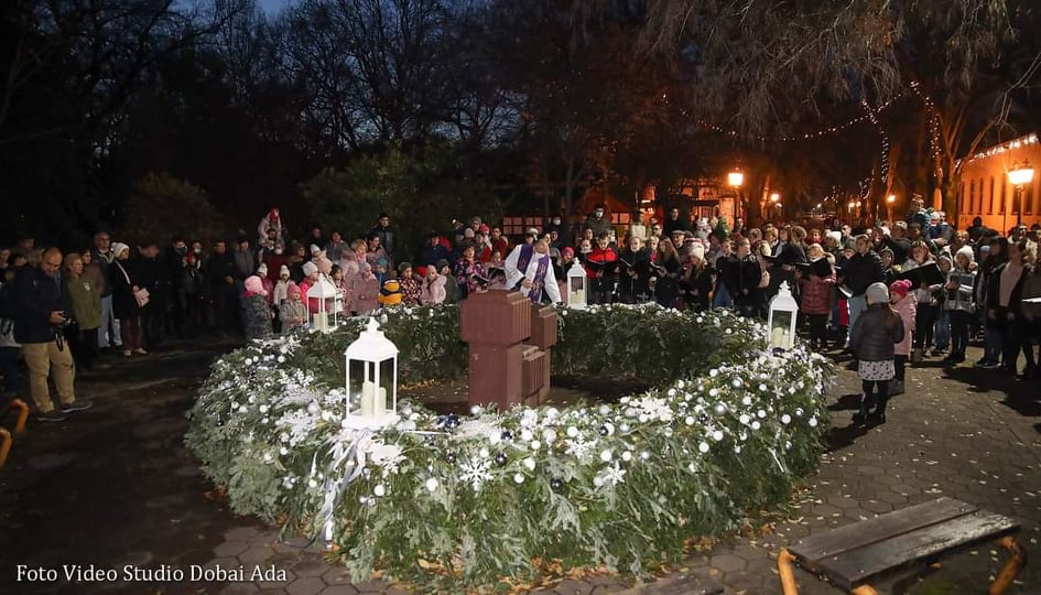 Az esemény az Ige-liturgiával kezdődött a templomban, majd az ünnepi időszaknak megfelelő műsorral fellépet az adai Szentháromság Gyermekkórus, valamint az adai Aranykapu Művelődési Egyesület legfiatalabb néptánccsoportja. Ezután a templomból közös séta következett a koszorúhoz, ahol az atya meggyújtotta az első gyertyát.