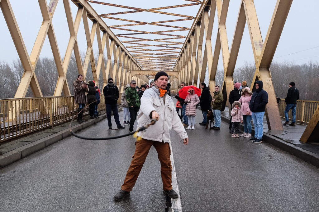 Egy órán át zárták le a tüntetők a zentai hidat, ezidő alatt ebben a Tisza-menti városban nagyobb incidens nem történt. A helyszínen az élhető környezetért, a tiszta levegőért és vízért tüntettek a helyiek, akik között volt néhány kisgyermekes család is, illetve voltak, akik házi kedvencükkel érkeztek. Az útlezárás idején két alkalommal engedték el a tüntetők a mentőszolgálat járművét.
