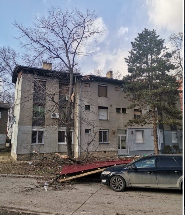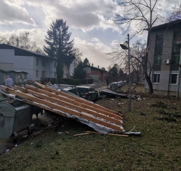 A vasárnapi orkán erejű szél nagy károkat okozott az egyik szabadkai tömbház lakóinak. A szél felkapta a Tesla-telepen lévő egyik tömbház tetőszerkezetét és azt a környéken parkoló autókig vitte. A tető egyes részeit a szomszéd utcában lévő házak tetején találták meg. A baleset során szerencsére a járókelők közül senki sem sérült meg.