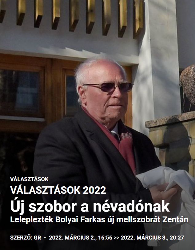 Valószínűen mindenki tudomást szerzett arról, hogy március 2-án Zentán szoborleleplezés történt, átadták Bolyai Farkas mellszobrát.