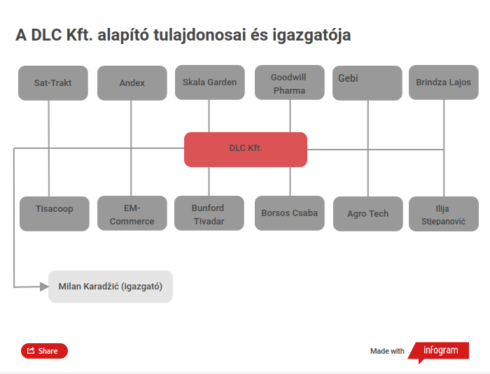 De mi is ez a DLC? A tevékenységi köre szerint ingatlanhasznosítással foglalkozó Diplomatic Logistic Center Kft. egy projektcég. 2021 januárjában tizenkét vajdasági magánvállalat, illetve magánszemély jegyeztette be a szerbiai Cégnyilvántartási Ügynökségnél (APR). A cégbejegyzésből megtudhatjuk, hogy a tulajdonosok fejenként 200 ezer dinár (1700 euró) alaptőkét fizettek be a DLC Kft. számlájára, így valamennyien 8,33% részesedést kaptak, a teljes bejegyzett tőke pedig 2,4 millió dinár (20 ezer euró) lett. Az alapítók a következők: