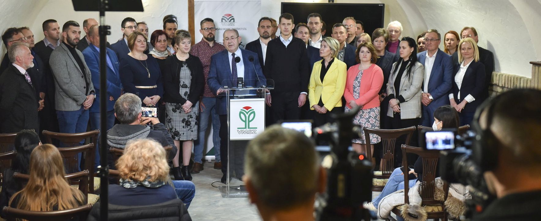 Pásztor István, a Vajdasági Magyar Szövetség (VMSZ) elnöke sajtótájékoztatót tart Szabadkán, a párt székházában 2022. április 3-án, az elõrehozott szerbiai parlamenti választások, valamint elnökválasztás napján. (Fotó: MTI/Molnár Edvárd)