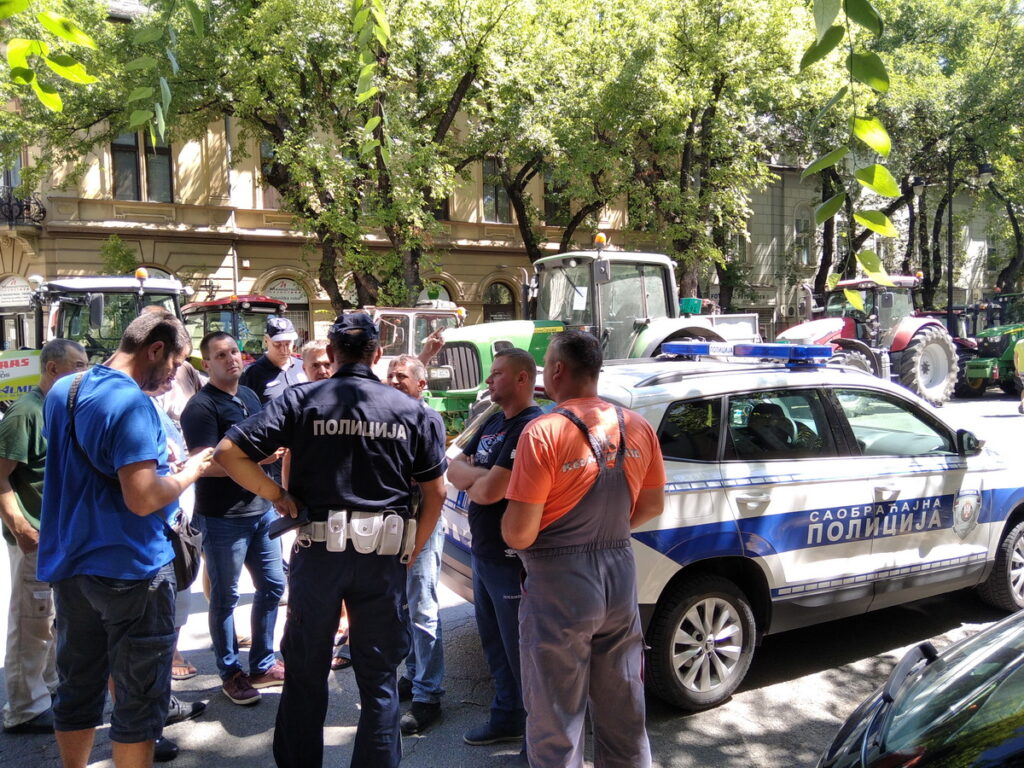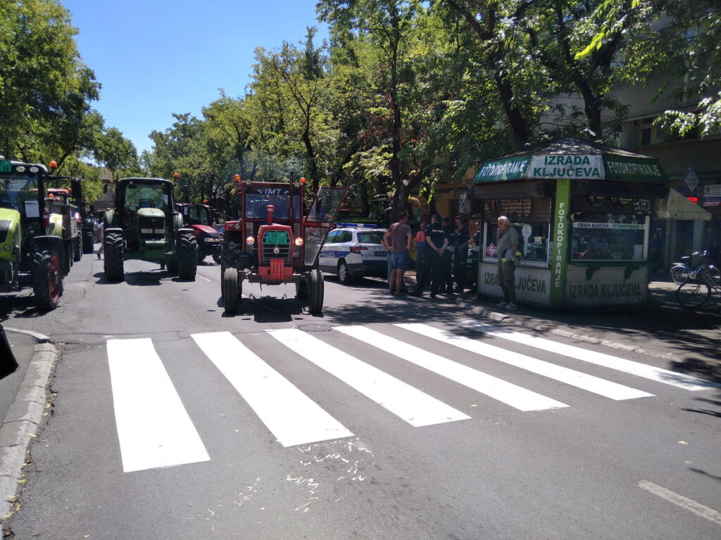 A Strossmayer utcában parkolnak Szabadkán a földművesek traktoraikkal, a forgalmat jelenleg rendőrök irányítják. A munkagépekkel tizenegy óra után érkeztek meg a Belgrádi úton haladva. A mintegy hatvan jármű a kialakított parkolóhelyeken illetve az út szélén parkol, tulajdonosaik pedig az utcán beszélgetnek, a polgármesterre várnak.