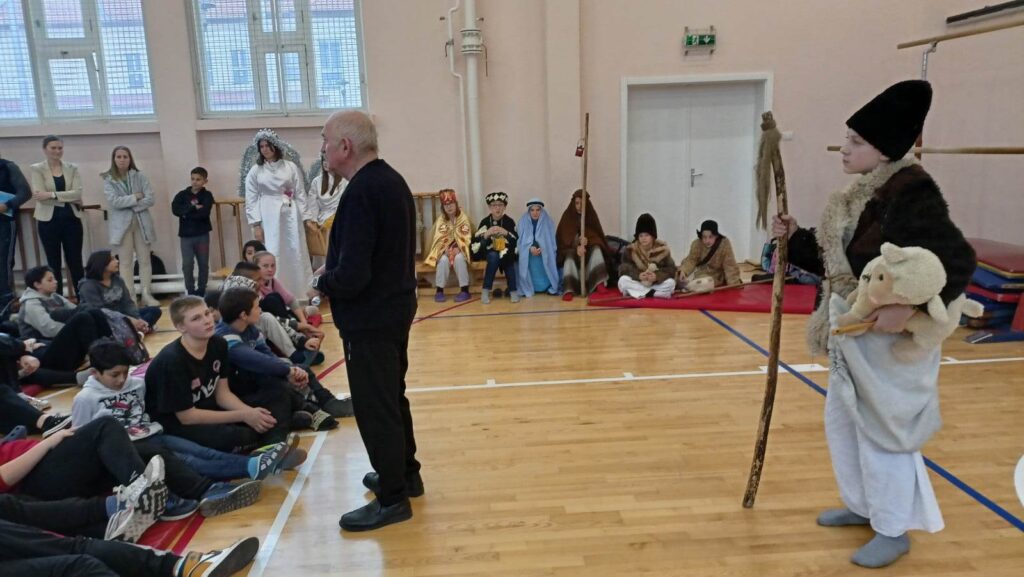 Kedden, Szent Miklós és Mikulás napján a zentai Thurzó Lajos Általános Iskola tornatermében közösen fellépett a karácsonyi–betlehemezős színjátszó csoport Horváth László nyugalmazott hittantanár, valamint a környezetvédelmi Zöldülj, Zenta! csoport Sambert Belec Anikó rajztanárnő vezetésével.