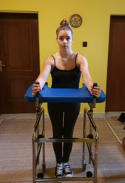 A kérdésre, miszerint hogyan telnek azóta a napjai, azt mondja, az edzések töltik ki a nap nagy részét. — Napi 4-5 órában gyakorlatokat csinálok, egy részét fekve, a hasizom erősítésére, egy részét pedig a járókeretben. Ide tartozik az egyensúlyozás, guggolások, lépések. Emellett heti két alkalommal járok egy privát klinikára Zentára, ahová a szülők vagy a nagyszülők visznek. Komplex rehabilitációs kezelésben veszek részt. Stimulációs tornákat kapok, finommotorikus fejlesztő tornát és a fizikoterápia több típusát, amely segíti a keringést, erősíti az izmokat, enyhíti a spazmatikus görcsöket. Amikor épp nem gyakorlatozom, kézműves ékszereket készítek ezzel is edzve az ujjaim finommotorika-készségét, meséli Anita.