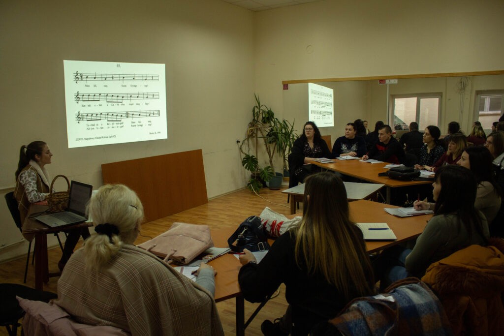 „Az óvodapedagógusok szabadon választhattak a tanfolyamok között, amik valójában egymásra épültek. Örömmel töltött el, hogy az óvónők fele a második, a zenei anyanyelvre fókuszáló találkozóra is jelentkezett”, mondta Tálas Ágnes óvodapedagógus.