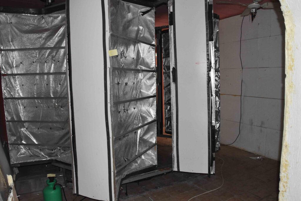 A rendőrök házkutatást tartottak a gyanúsítottak által használt házban, ahol egy, marihuána mesterséges termesztésére berendezett, teljesen felszerelt, rögtönzött laboratóriumot találtak, valamint 10 tő kendert, amelyek összsúlya 636 gramm, illetve 40 gramm szárított marihuánát.