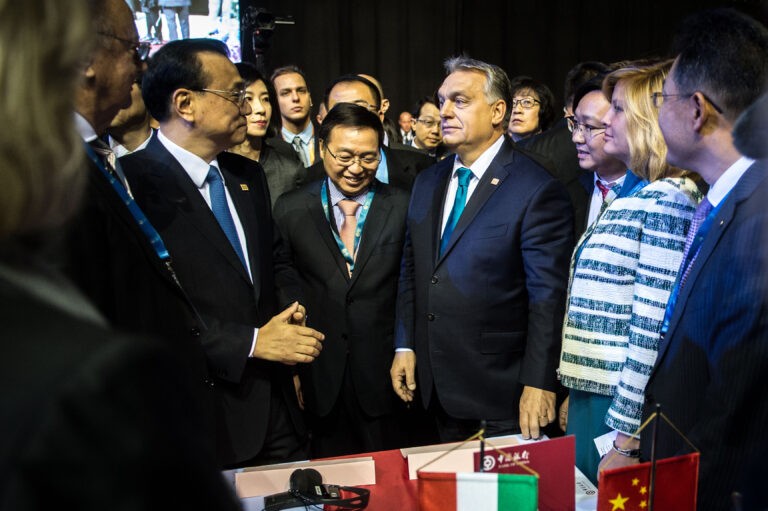 Orbán Viktor miniszterelnök és Oláh Zsanett a Kína–Kelet-Közép-Európa csúcstalálkozón 2017. november 27-én. Forrás: miniszterelnok.hu
