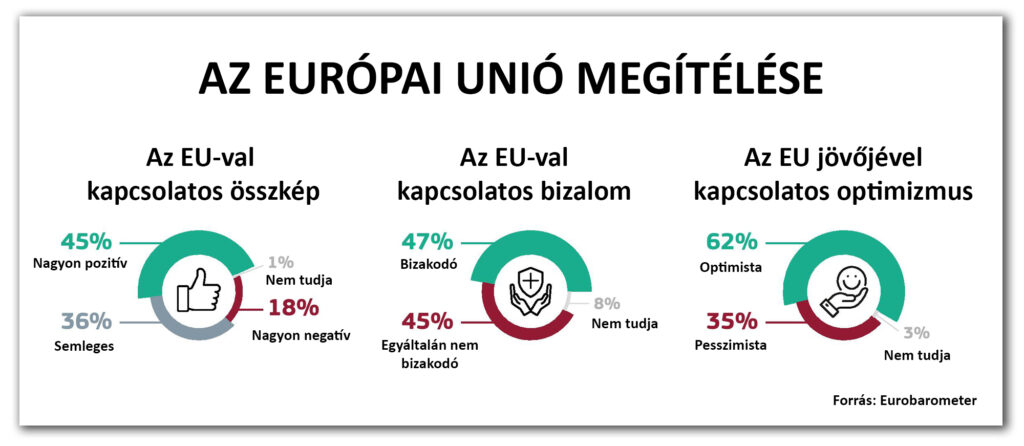 Az EU saját helyzetére vonatkozóan a megkérdezettek úgy válaszoltak, hogy az általánosan kialakult kép többségében pozitív, az EU-val kapcsolatos bizalmuk is hasonló, viszont kimondottan optimisták az EU jövőjét illetően.