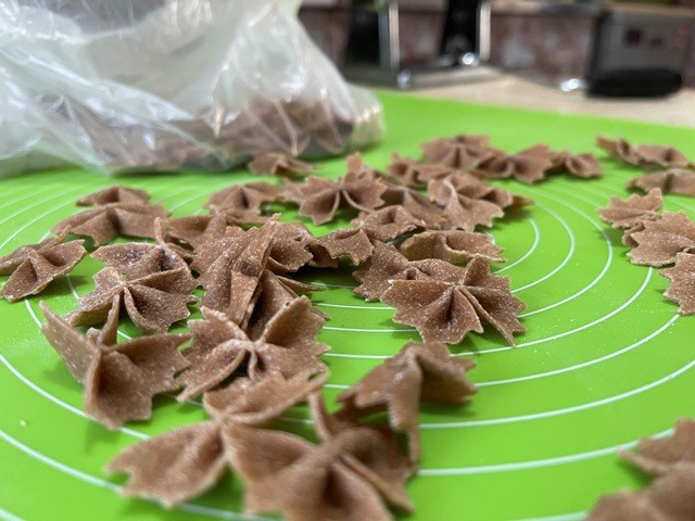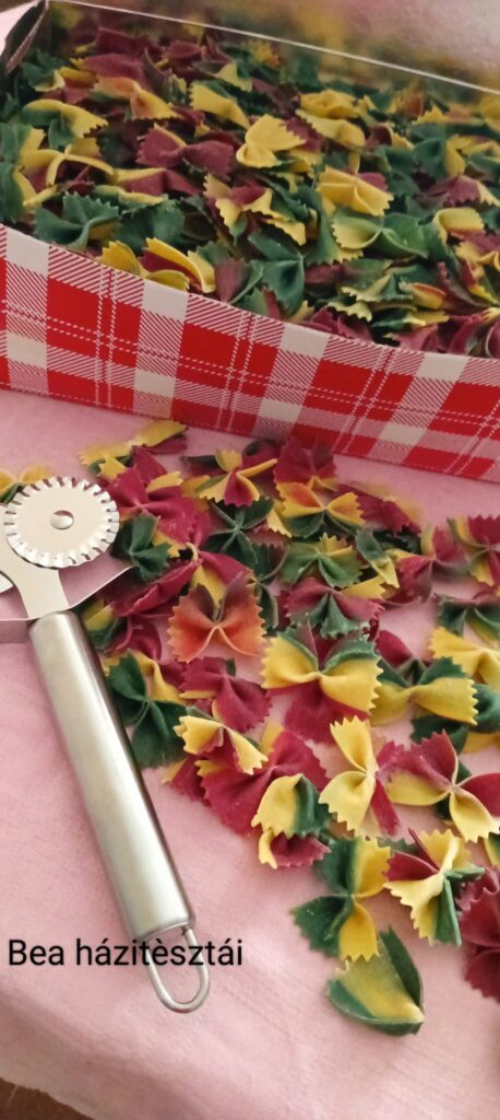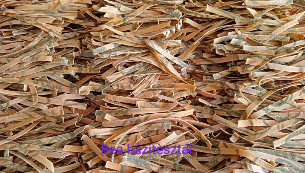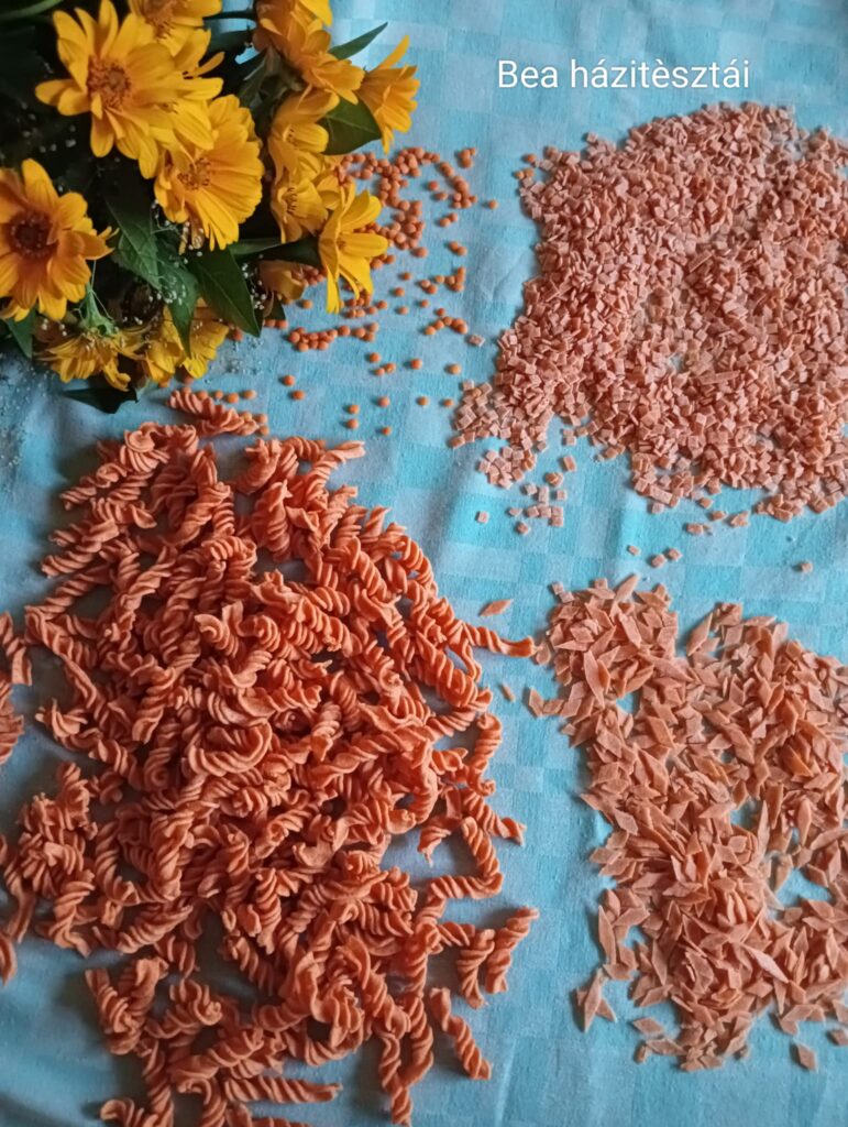 – Szegény dédi, ha tudná, hogy az ő derelyevágójával fogok én most pénzt keresni. A tésztagyúrást különben akkor kezdtem, és akkor kezdtem figyelni annak a fontosságára is, hogy minden házi legyen, amikor kiderült, hogy a középső fiam érzékeny az adalékokra, színezékekre. Azóta készítem így a tésztát, hogy abban semmi adalék nincs, csak a liszt és a tojás, ahogy a Jóisten megadta. Csak fűszereket teszek bele, vagy gyógynövényket. Semmi mást. Zöld festék helyett alga kerül bele, céklaport teszek a piroshoz. Ha sárgát akarok, akkor kurkumát – magyarázza Bea.