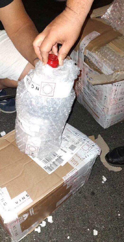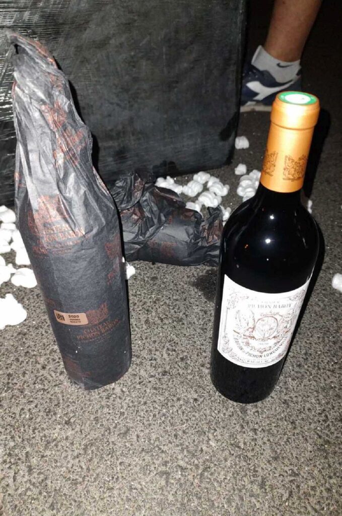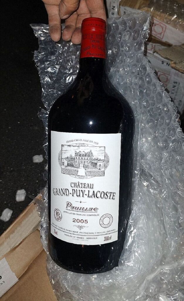 A vámosok kérdésére a sofőr azt felelte, hogy használt bútorokat szállítanak, társai pedig azt mondták, hogy személyes poggyászt visznek. A kisteherautó rakterében azonban a bejelentett használt bútorok mellett 18 kartondoboznyi bort is találtak a vámosok, a dobozokban pedig 100 és 3000 euró közötti értékű márkás borok voltak, egyek közt Chateau La Fleur, Corton Grand Cru, Biserno, Vega Sicilia és hasonlók.