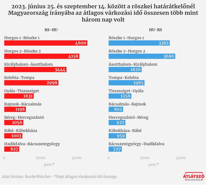 A teljes szerb-magyar határszakaszon, a Magyarország irányába belépő forgalom friss, összesített adatai szerint a 2023-as év első és második negyedéves időszakában a 2019-es csúcshoz képest 6,5-11,5 százalékos csökkenés volt tapasztalható. Pedig a Belügyminisztérium több tízmillió eurót költene fejlesztésre uniós forrásból, éppen a növekvő utasszámra hivatkozva.