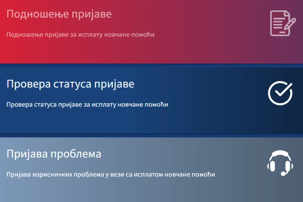 Az államkincstár honlapjára belépve a harmadik, azaz az utolsó lehetőségre a „Prijava problema” (Hibabejelentés) gombra kell kattintani. Itt lehet a kifizetéssel kapcsolatos gondot jelezni.