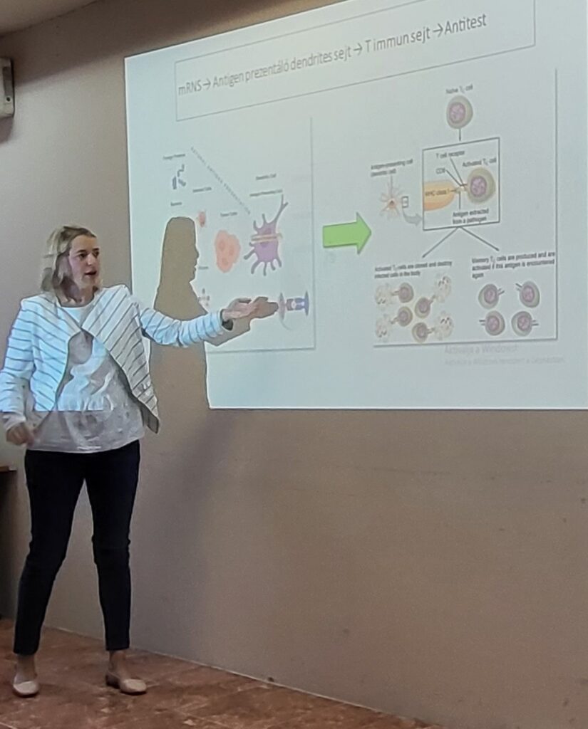 A program keretében a Nobel-díjasokról és kutatásaikról dr. Fábri Galambos Izabella, az Újvidéki Egyetem Orvostudományi Karának tanára Karikó Katalin felfedezésének tudományos hátterét ismertette és beszámolt arról is, hogy a világjárvány megpróbáltatásaival szemben mekkora nagy segítséget jelentettek ezek a védőoltások. Elmondta, hogy a kikísérletezett módszer fantasztikus lehetőségeket teremtett új gyógyszerek feltalálásában a jövőben. A sikeres fejlesztésekhez óriási anyagi háttérre és több tudományág bevonására volt szükség.