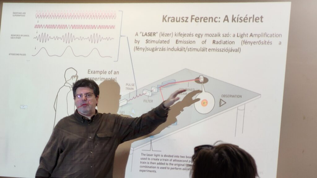 Krausz Ferenc pedig megkapta a 2023-as fizikai Nobel-díjat (Pierre Agostinivel és Anne L’Huillier-vel megosztva) „a kísérleti módszerekért, melyek az anyagban jelen levő elektronok dinamikájának vizsgálatában alkalmazható attoszekundumos fényimpulzusokat generálnak”.