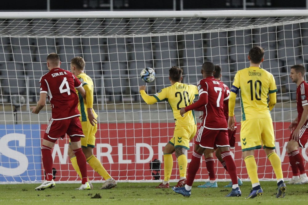 Jelenet a Litvánia-Magyarország (2:2) mérkőzésről (AP Photo/Mindaugas Kulbis)