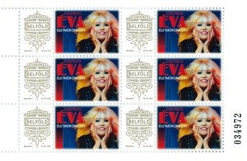 Hegmanné Nemes Sára ismertetése szerint a szerdán forgalomba kerülő bélyeg retro arculati világot kapott. A bélyeg Benedek Imre grafikus tervei alapján készült, Tóth Ildikó arculati elemeinek és Rosta Márk fotójának felhasználásával. A bélyeghez alkalmi boríték is tartozik, valamint egyedi bélyegző, amin az Éva és az életműkoncert felirat olvasható. A személyes bélyeg ötezer példányban kerül forgalomba, 1800 forintos áron vásárolható meg a Filopostán, a Magyar Postán és a posta weboldalain.
