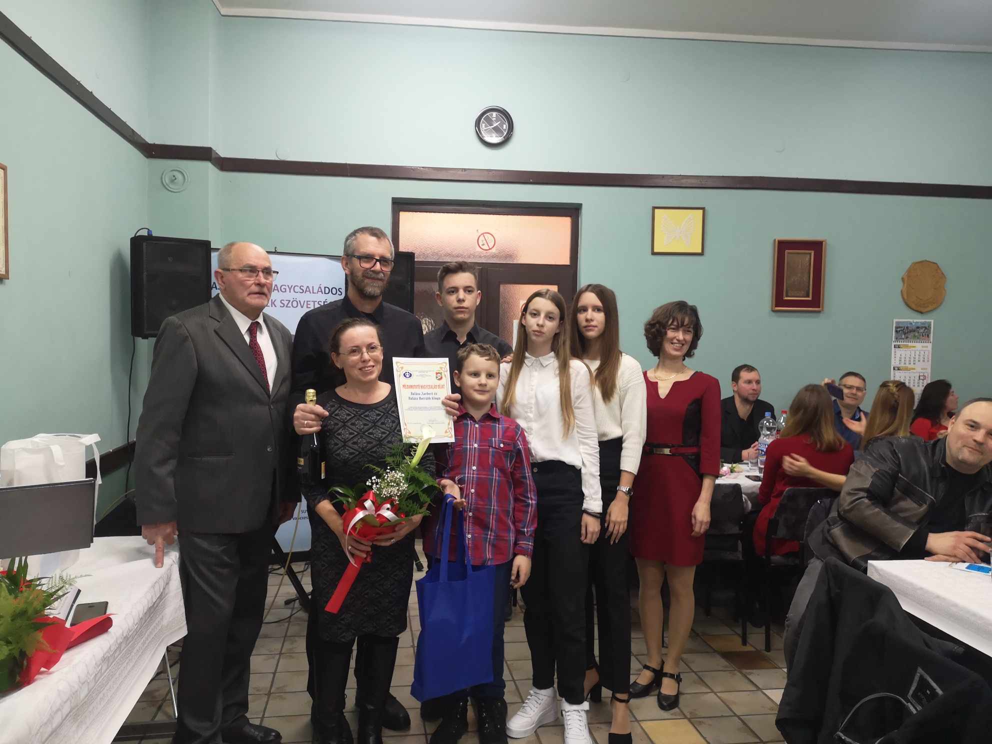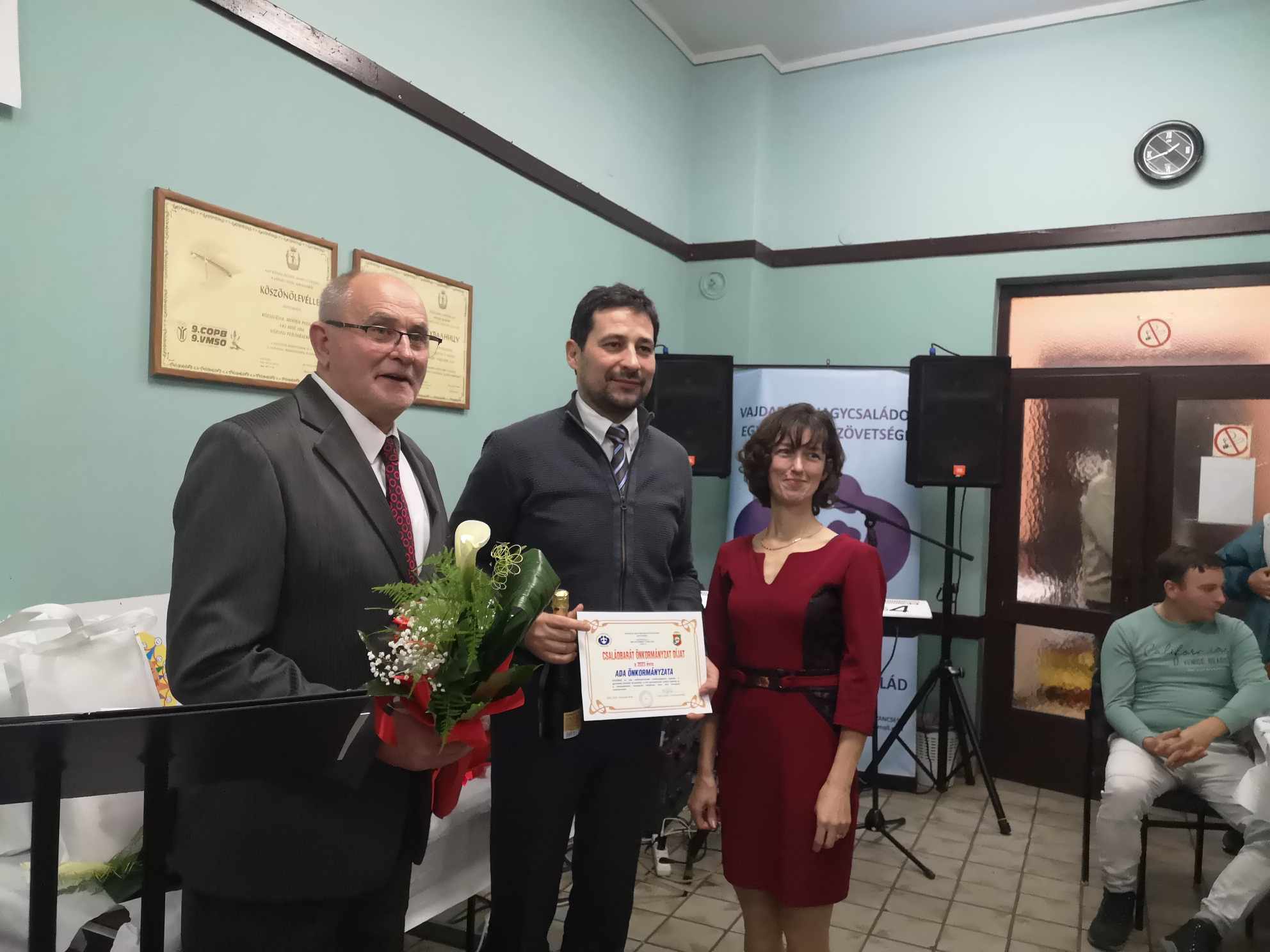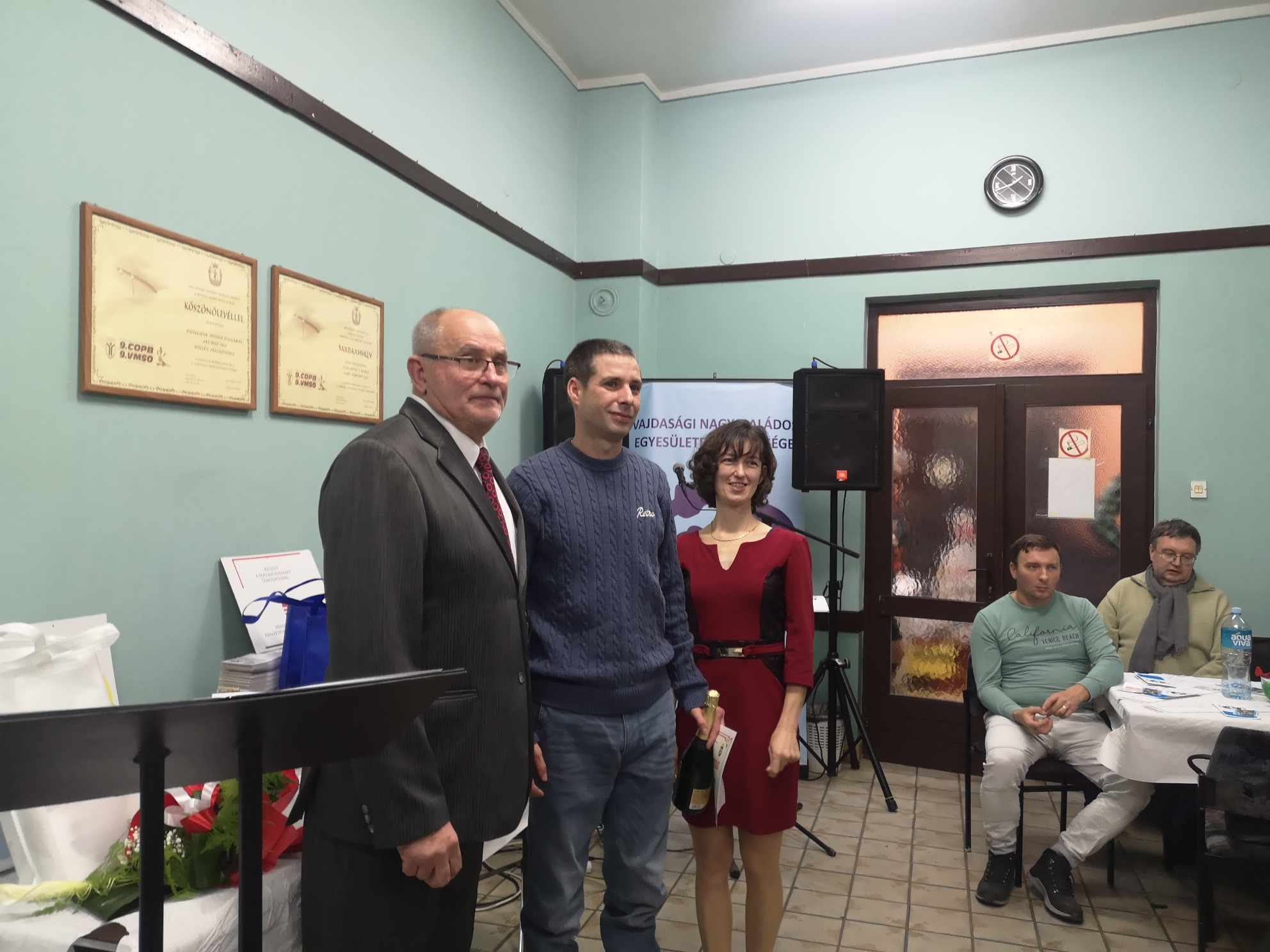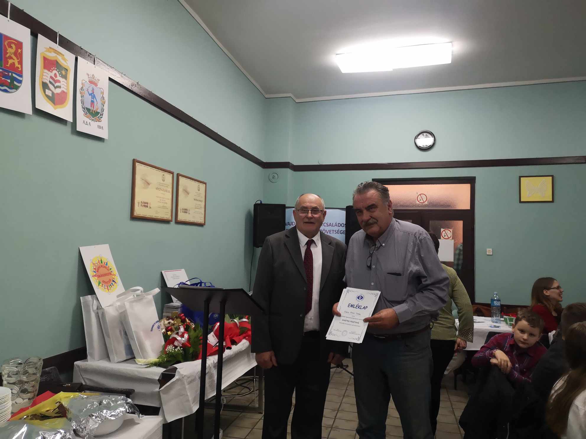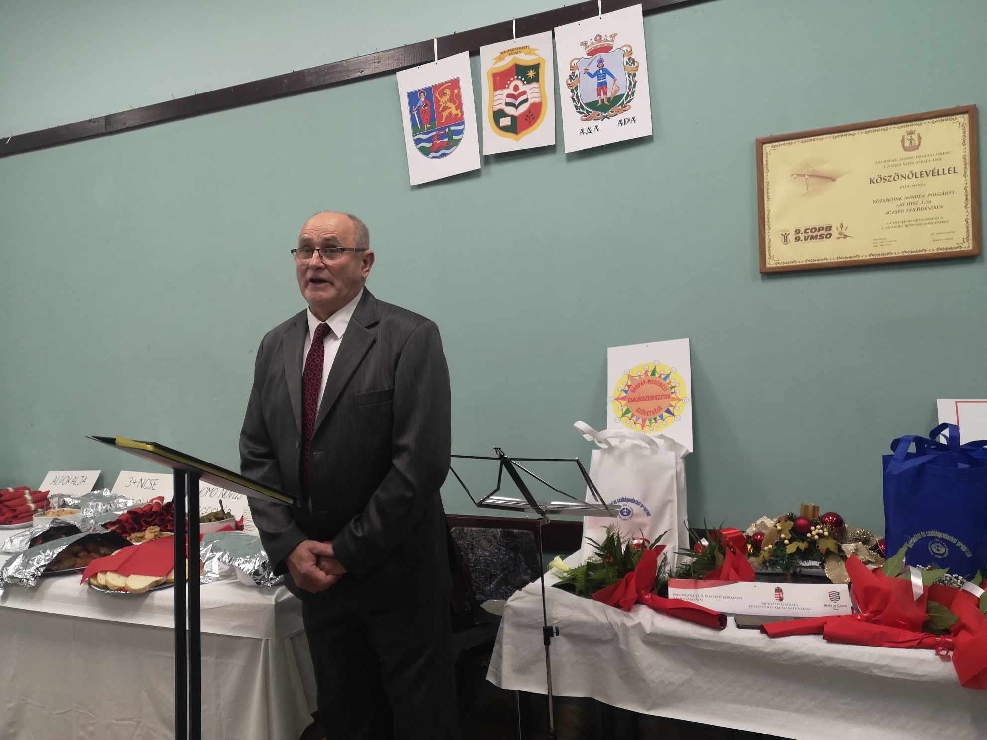 – Az idei díjátadó ünnepségünk – amely egyben az év utolsó rendezvénye a Vajdasági Nagycsaládos Egyesületek Szövetségének – bizonyos szempontból rendhagyó, ugyanis ezt az esti eseményt, délelőtt és kora délután, egy gasztro rendezvény előzte meg, amelyet a helyi Vöröskereszt épületében bonyolítottunk le. Engedjék meg, hogy először erről szóljak néhány szót. A gasztro eseményen egy anyaországi, egy erdélyi és két vajdasági csapat, az Alpokalja Szombathely és a Homo Novus Segesvár, illetve a 3+NCSE Topolya és az Adai Vöröskereszt csapatának tagjai vettek részt. Négyféleképpen, mégis magyar hagyományok és ízvilág szerint igyekeztek feldolgozni egy-egy fél disznót, és elkészíteni belőle mindenféle finomságot. A cél az volt, hogy bemutassuk hányféleképp is készíthető el a Kárpát-medencében például a töltöttkáposzta, a kolbász vagy a tepertő – ezeket a vacsoránál kóstolhatják meg a vendégek. Azt gondolom, hogy egy nagyon jó hangulatú, közösségépítő napnak lehettünk részei, ahol a barátkozásé és nem a versenyé volt a főszerep – kezdte gondolatait Fodor Zoltán, a VANCSESZ elnöke, aki ezt követően minden csapat képviselőjének egy oklevelet adományozott a részvételért cserébe.