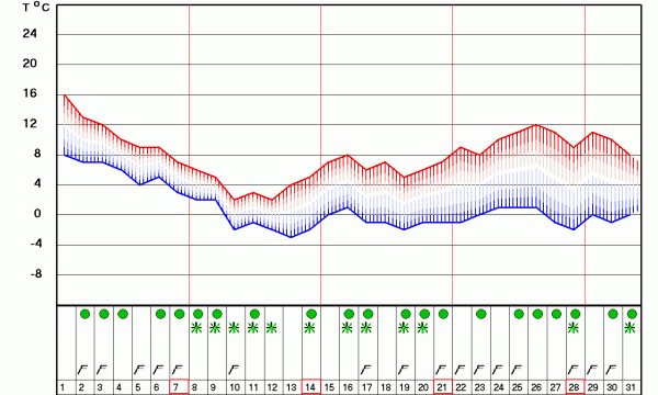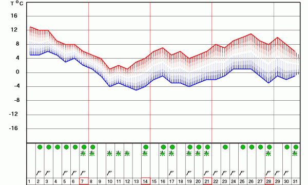 Újvidéken a hónap elején plusz 12 fok várható, míg a leghidegebb januári nap az előrejelzés szerint a tartományi székvárosban is tizenharmadika lesz, amikor mínusz öt fok várható. A szakemberek szerint Belgrádhoz viszonyítva Újvidéken egy nappal korábban, január hetedikén érkezik a hó.