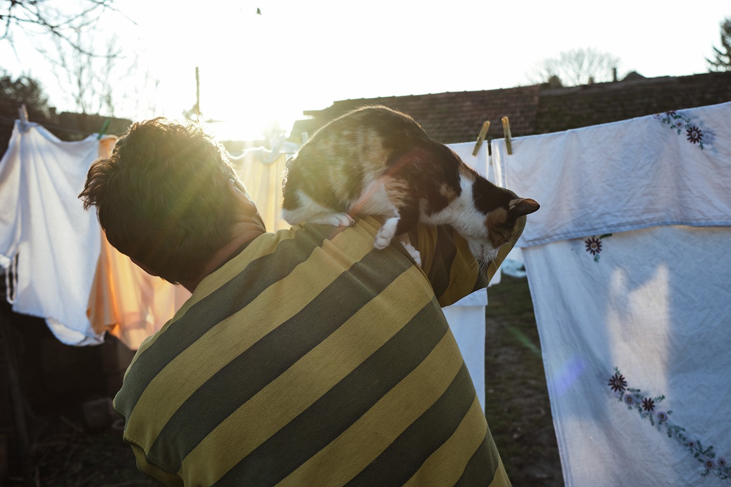 Az utcán egy kis macska nyarvog és egy ház ablakát figyeli. Kopogok az ablakon, és megkérdem, hogy az ő macskájuk-e. A válasz pozitív, már jönnek is ki érte. Belépek az udvarba, ahol sok kutya és macska található, egyikük elbújt a tyúkólban, mivel ott jó meleg van, a háziak szerint szeret a tyúkokkal aludni.