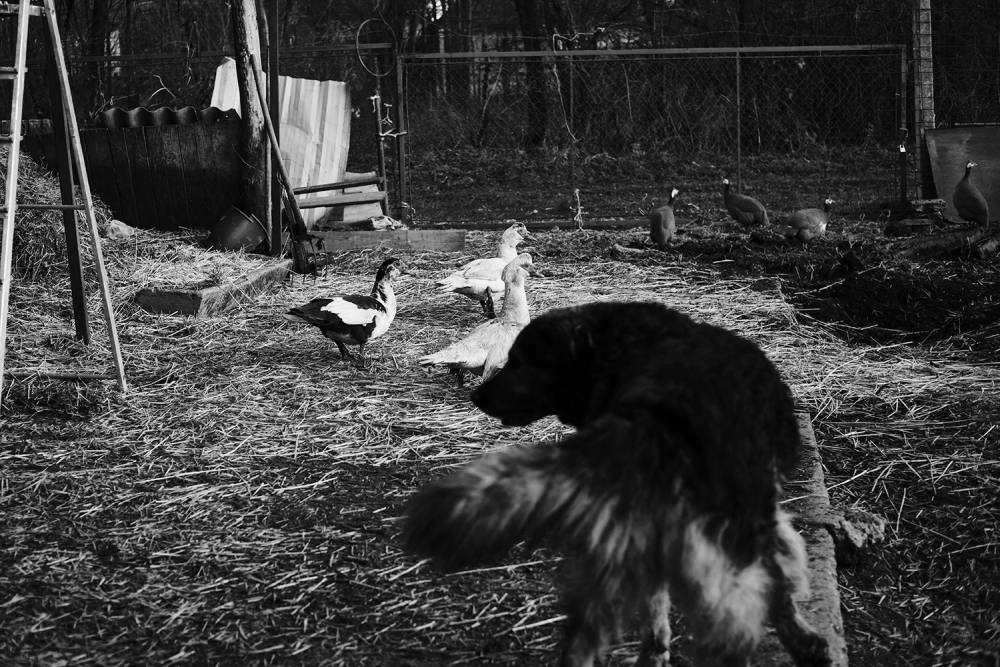 Az emberek megengedték, hogy bemenjenek az udvarukba, és tyúkokat, ludakat és pulykákat zavargásszak. A kutyájuk is fut utánam, jó szórakozás ez neki. Nekem nemkülönben.