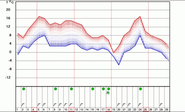 Havazásra február 18-a körül lehet számítani, és ekkortól várhatók komolyabb vagyok is, nulla és -5 fok közötti értékekkel. Ezután némi felmelegedés várható, majd február végére ismét süllyedni fog a hőmérséklet.