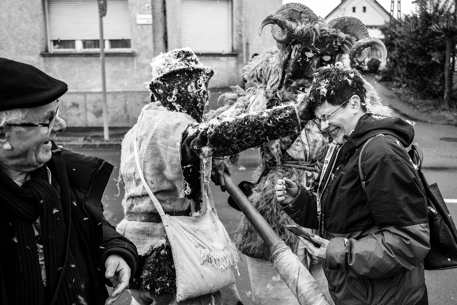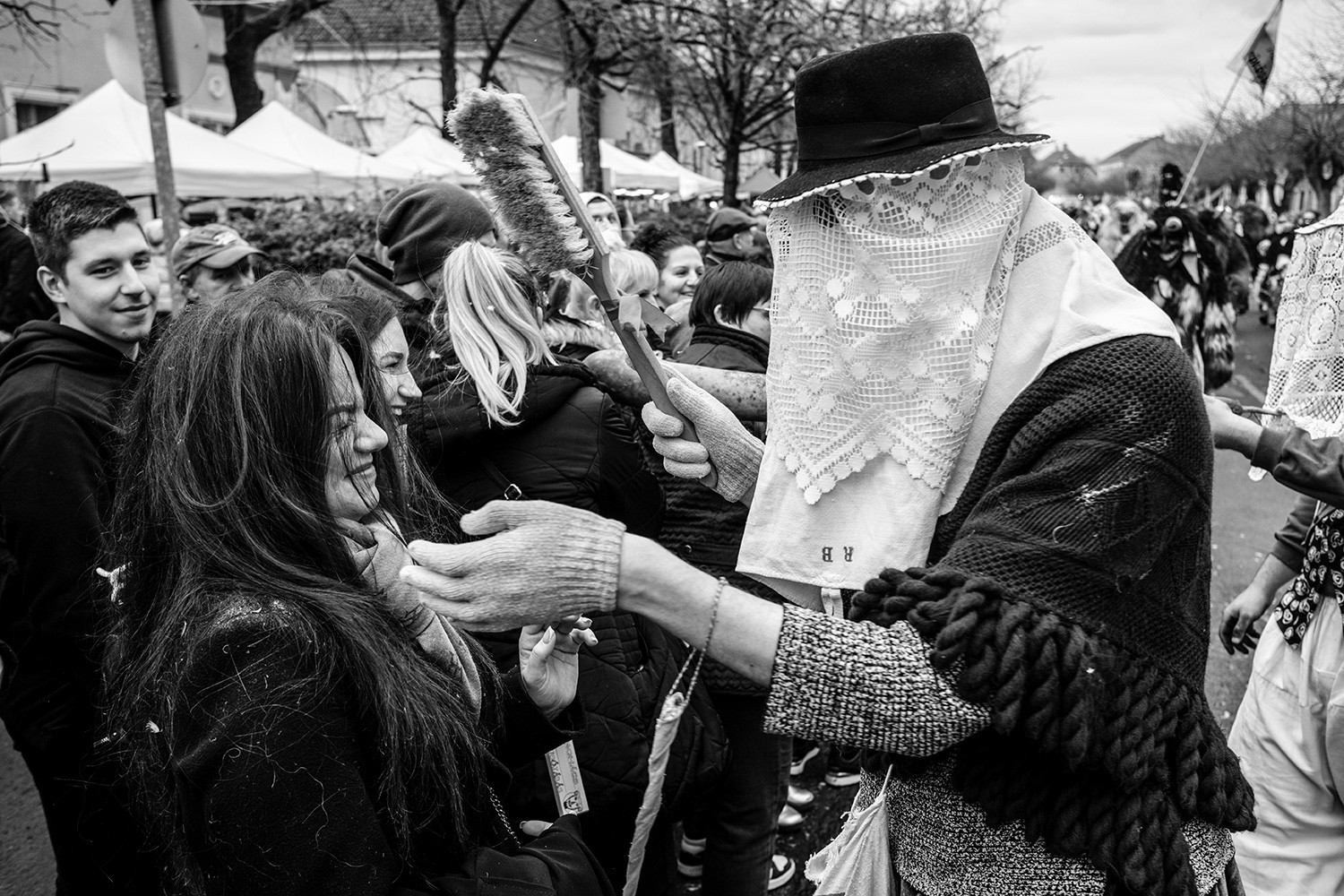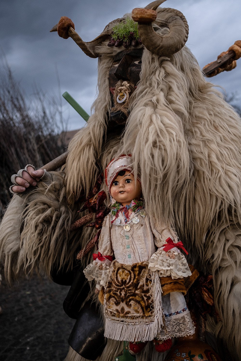 Egyedül sétált a sötét sikátorokban, amikor meglátta, hogy a távolban egy alak közeledik felé. Csak az övére erősített kolomp hangja törte meg a csendet az arctalan lény minden egyes lépésével. És ahogy közeledett, egyre jobban elhatalmasodott benne a hidegrázás. Valami közeledik felé… És utoléri. Így álltak egymással szemben, egyetlen szó és mozdulat nélkül. Hangos levegővétel szűrődött ki a maszk mögül, a báránygyapjú erős szaga áradt az izzadságtól átitatott bundából. Úgy állt a lény előtt, mintha földbe gyökerezett volna a lába, tekintetét a maszkban lévő fekete lyukakra szegezve, amelyek mögött egy misztikus világ rejtőzik, amely távoli és ismeretlen is a számára. Ez a gyötrelem örökkévalóságnak tűnt. Egyszer csak hirtelen a busóból kinyúlt az ember, és megsimogatta az arcát.