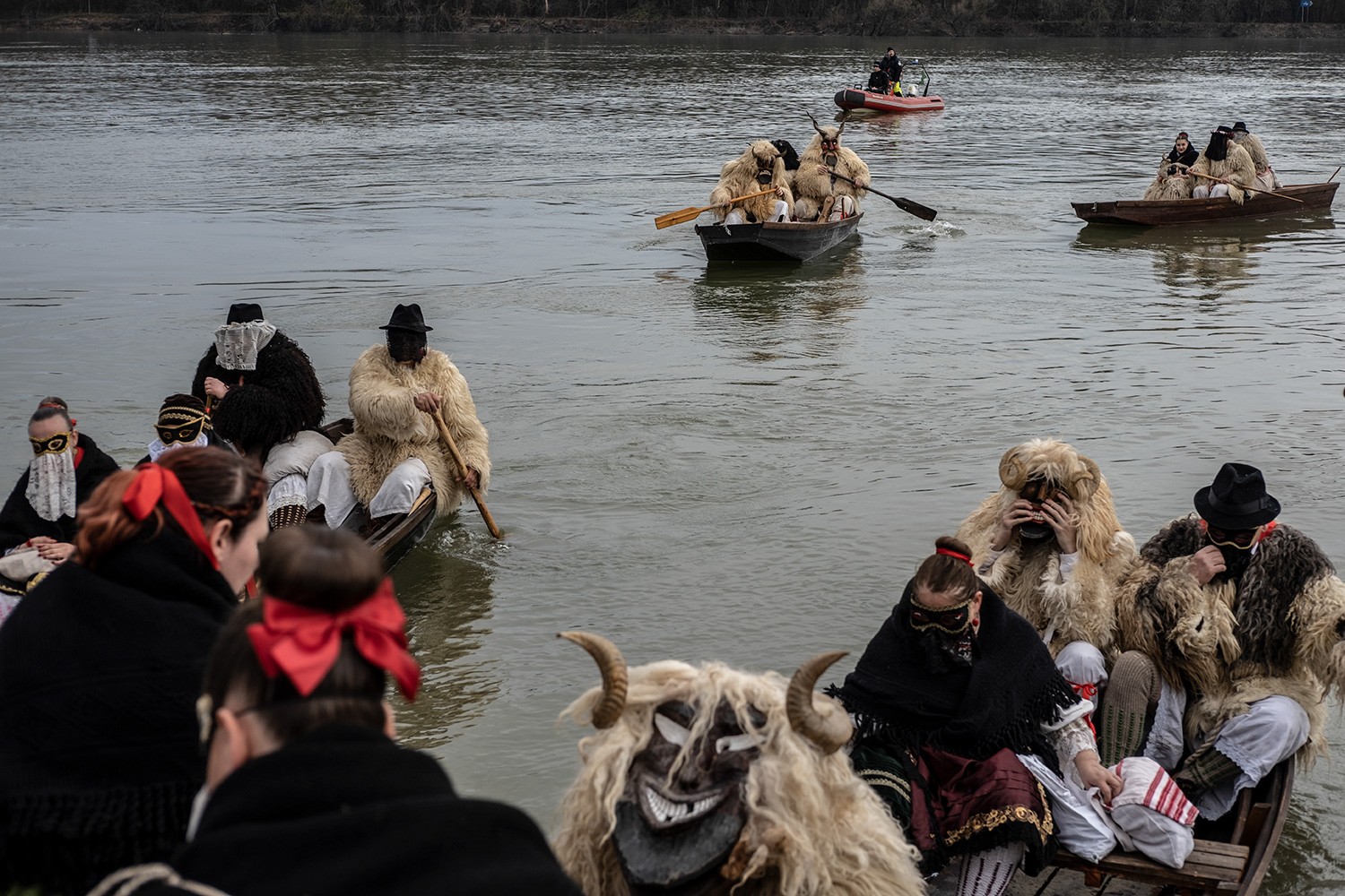 Egy ágyúdörgés hallatszott a távolban – jelezve, hogy a busók átkelnek a folyón. Figyeljük őket, ahogy a csónakon helyet foglalva közelednek, és magukkal hozzák a misztikus világukat. A busók elvonulnak a bámészkodók mellett, akik megragadtak mindennapi világukban. És ha csak egy pillanatra is, de összeér ez a két világ, és belepillantunk a bennünk lévő elképzelhetetlenbe, a másokéba, a szentbe. Megjelennek előttünk azok a lények, akik a világok küszöbén járnak. Körülöttük az irritáló jankelék, akiknek az a szerepük, hogy a turistákat távol tartsák a busóktól, de egyben az is a feladatuk, hogy az embereket bevonják a szertartásba, meghintik őket tollal, hamuval, liszttel, vagy éppen egy kicsit megvernek valakit, esetleg összekócolják valakinek a haját. A rettenetes busók mellett ott vannak a „szép busók”, a sokác lányok, akik a szépséget, a tisztaságot szimbolizálják. Sok kultúrában és szokásban létezik a szépség és a szörnyeteg. A sokác lányok nem kizárólag nők, férfiak is lehetnek, különösen korábban volt ez jellemző, amikor a szépség szerepét is a férfiakra bízták.