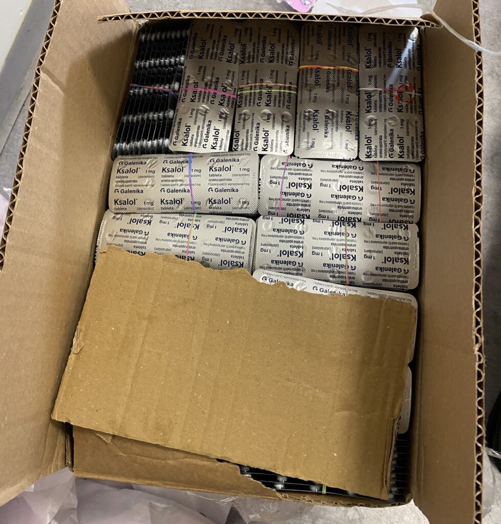 A csomagtér átvizsgálásakor két hatalmas táskát és egy dobozt találtak a vámosok, amelyek tele voltak Xalol tablettával, amely pszichoaktív hatóanyagot tartalmaz.