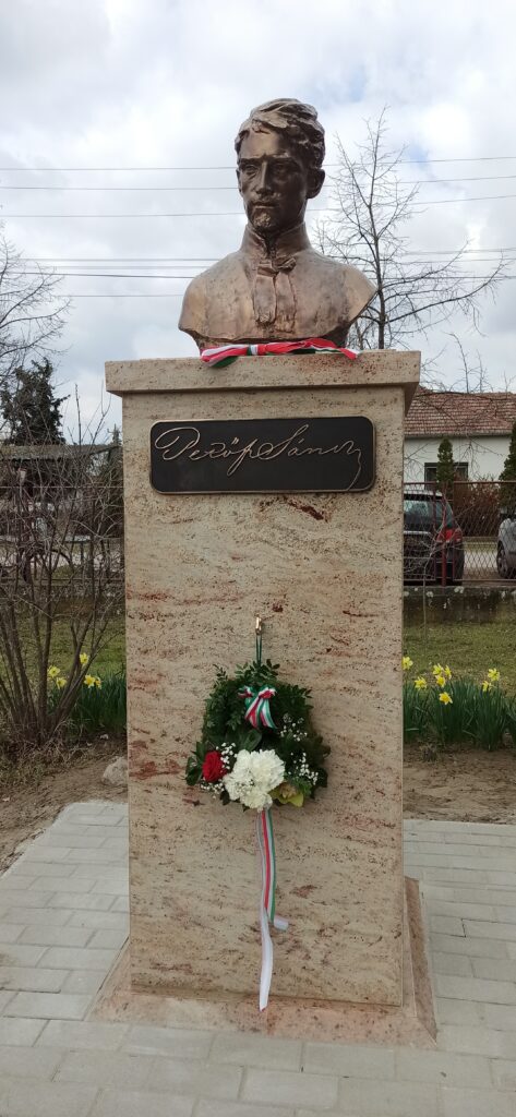 Petőfi Sándor mellszobra a királyhalmi iskola udvarán (fotó: Tómó Margaréta)