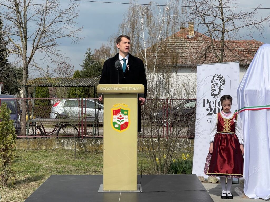 Az ünnepség díszvendége volt Potápi Árpád János, a magyar Miniszterelnökség nemzetpolitikáért felelős államtitkára. Ünnepi beszédében hangsúlyozta, nincsen a magyarságnak még egy olyan kiemelt napja, mint március 15-e, egy olyan történelmi időpont, amely összefogja a magyarokat bárhol is éljenek a világban. Petőfi Sándor magában szimbolizálja azt is, hogy a magyarság nem származás, hanem vállalás kérdése. Büszkén vállaljuk mi is a magyarságunkat és adjuk át ezt az új generációknak.