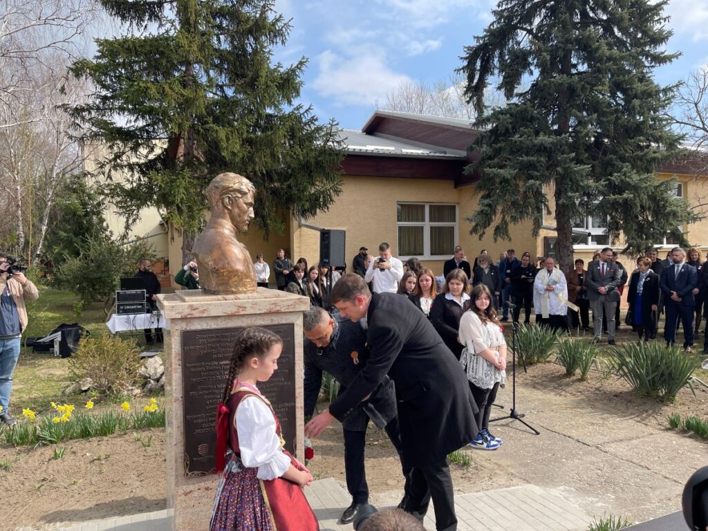 Petőfi szobrát ezúttal nem a politikusok, hanem a királyhalmi diákok leplezték le, majd rövid ünnepi műsort adtak elő.