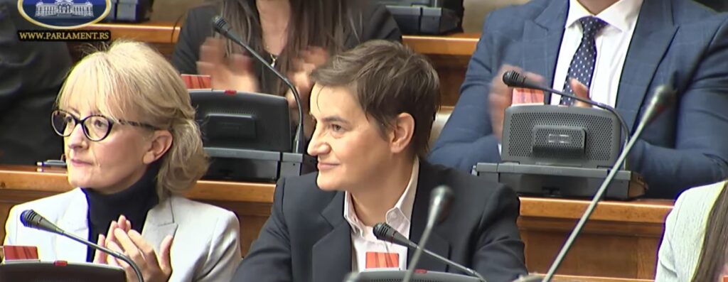 Az ülés 10 órakor kezdődött, Ana Brnabić érdemeiről egyelőre szó nem esett, csak az ellenzék megalázása volt napirenden, habár a napirendi pont Ana Brnabić elnökké választása.