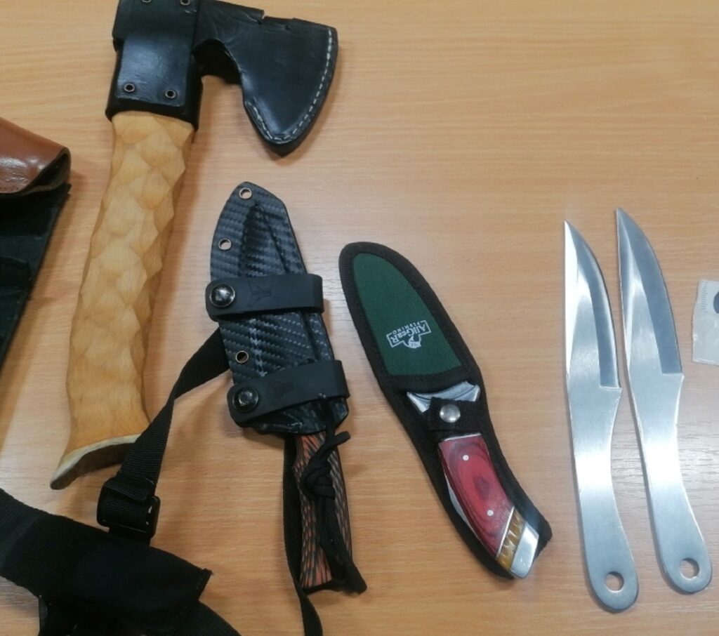Habár a sofőr azt mondta, nincs bejelenteni valója, a vámvizsgálat során kiderült, hogy az autó belső burkolatai egy teljes fegyverarzenált rejtenek. Előkerült egy japán szamurájkard, a hozzá tartozó tokkal, négy kés, egy fejsze és egy gázpisztoly, a hozzá tartozó tárral és 5 darab 9 mm-es golyóval.