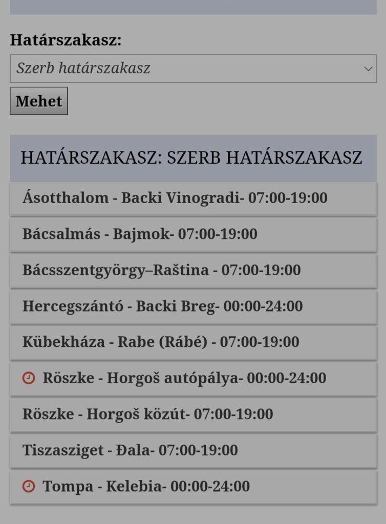 A Horgos autópálya átkelőnél viszont a hölgy a telefonban azt mondta, miután leellenőrizte az információt, hogy a szerb oldal 24 órában dolgozik, ők az egésznapos nyitvatartással számolnak, így nem tudja mi lesz este hét óra után.