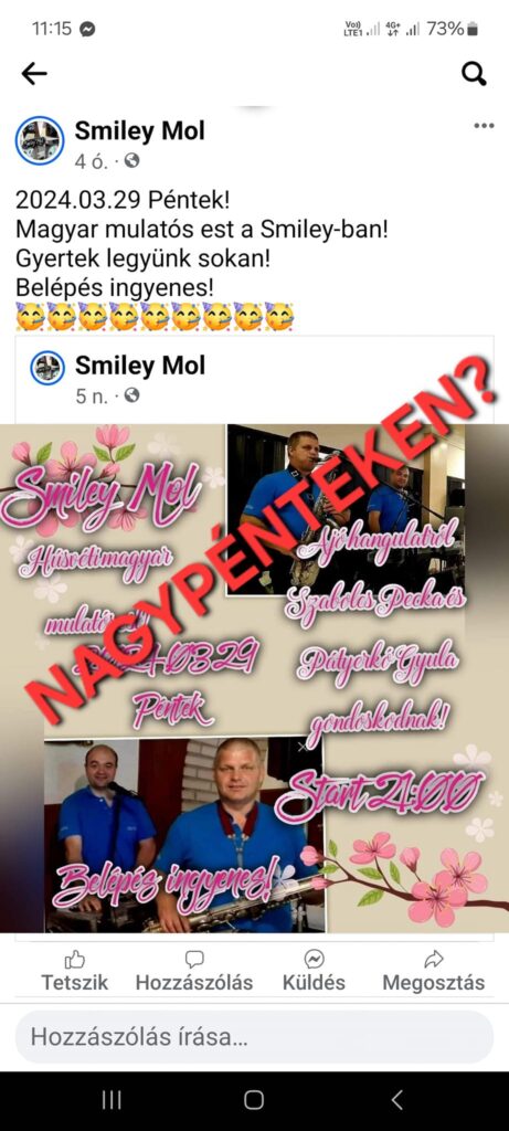 A Moholi Plébánia Facebook-oldalon hívta fel a figyelmet egy magyar, szórakoztató eseményre, amelyet helyben az egyik szórakozóhelyen szerveznének, nagypénteken.