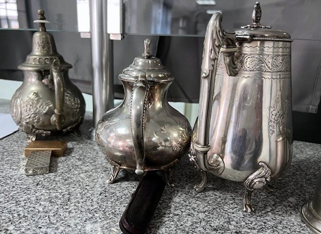 Az alaposabb vizsgálatot követően megerősítették, hogy a táskákban néhány ruhaneműn kívül antik teáskannák, olajlámpák, poharak, bögrék és különféle, vélhetően ezüst étkészletek voltak.
