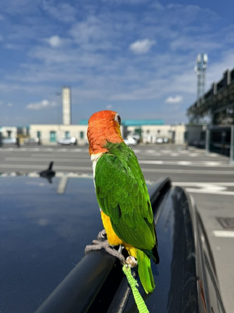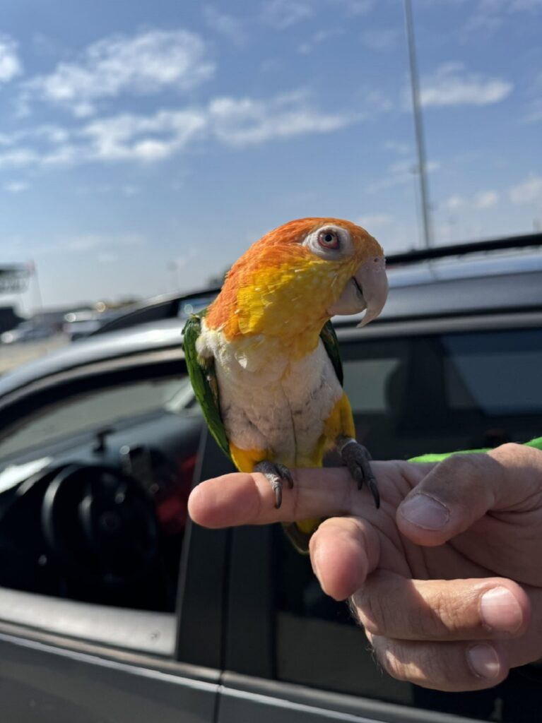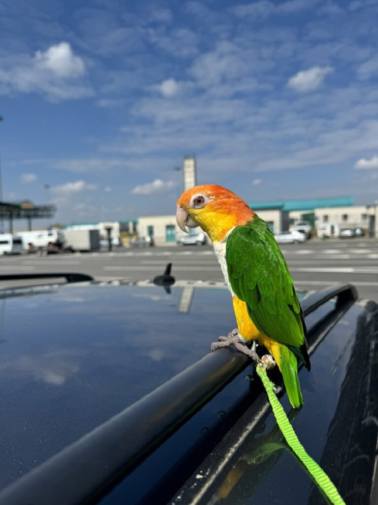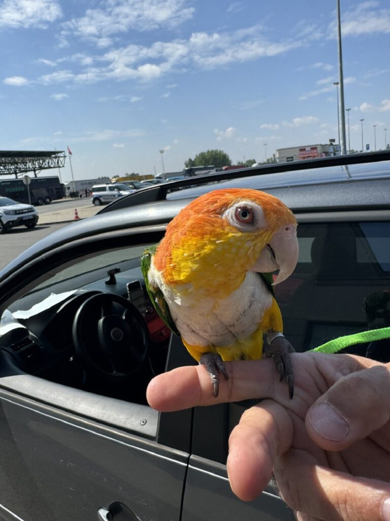A vámvizsgálat során azonban kiderült, hogy az anyósülésen egy piros szövettel letakart kalitkában egy rozsdássapkás papagáj volt.