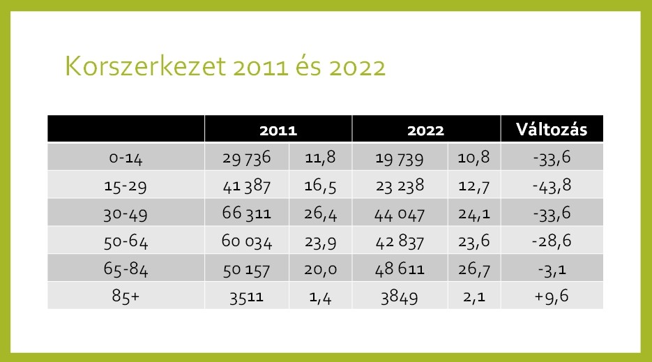 A következő táblázat a korszerkezetet mutatja, amelyen látszik a nagyfokú elöregedés: