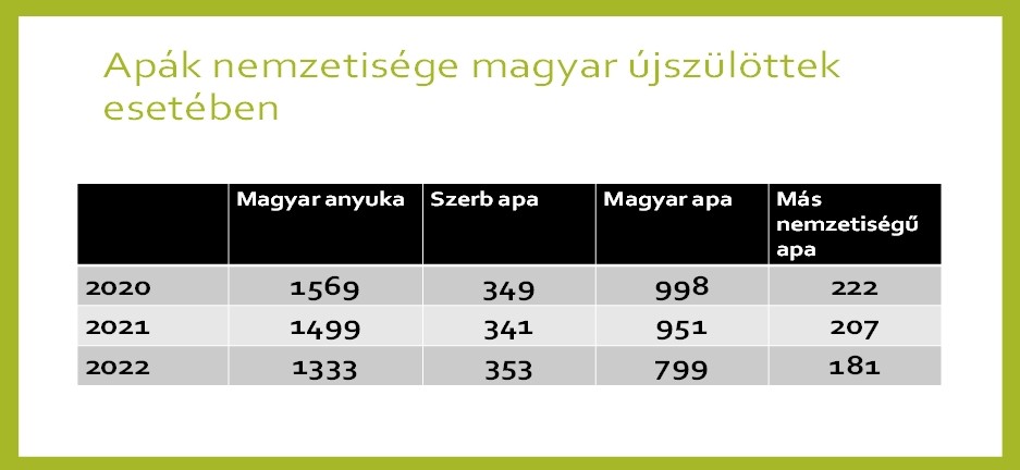 Visszatérve a vajdasági helyzethez: az egyik grafikon az apák nemzetiségét ábrázolja magyar újszülöttek esetében.