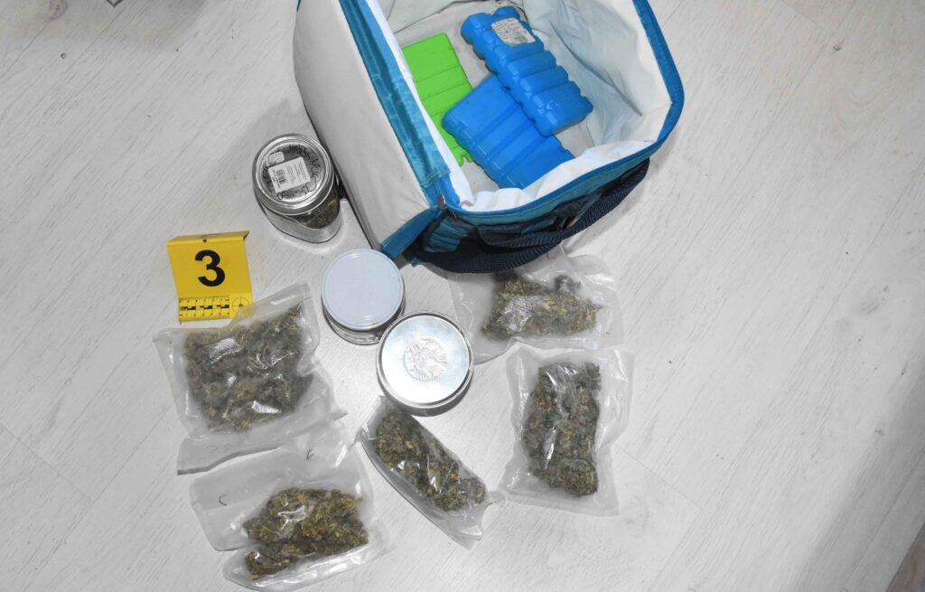 A rendőrök a gyanúsítottnál tartott házkutatás során mintegy 350 gramm anyagot találtak, ami feltehetően marihuána, valamint kisebb mennyiségű hallucinogén gombát és egy digitális mérleget.