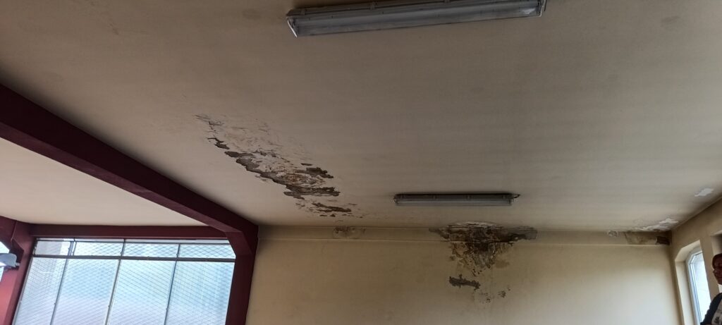 – Nos, mindez szép és jó lenne, ha a gyerekem nem járna ebbe az iskolába, és pontosan ismerném az iskola helyzetét. A képeken láthatjátok a testnevelési terem állapotát. A plafon hullik, és vödrök vannak mindenhol az esővíznek. Ugyanez a helyzet néhány tanteremben is a második emeleten. Az ablakok egyáltalán nem záródnak rendesen, így télen átfúj a szél az egész iskolán, és sokat nem is lehet kinyitni, mert szétesnének – írja az édesapa.
