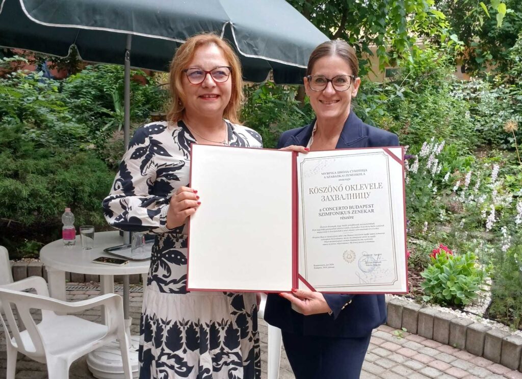 – Iskolánk abban a megtiszteltetésben részesült, hogy a budapesti „Concerto Budapest” Szimfonikus Zenekar hárfát ajándékozott intézményünknek. A megbeszélések másfél évig tartottak és a megvalósítás sikerrel zárult köszönhetően a zenekar csodás vezetőségének és Keller András karmesternek, aki egyetértett Petrović Lenka hárfaművésznő, az említett zenekar tagjának az ötletével – közölte a Szabadkai Zeneiskola.